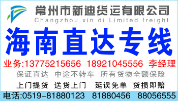 常州到海南物流專線公司隸屬江蘇新迪物流集團有限公司旗下精品專線,常州到海南物流公司每天業(yè)務(wù)將收取到的貨物全部入倉,到晚上8點鐘開始全部裝車發(fā)往海南。到達海南點后由站點工作人員即時分派到各收貨方。如果是離海南偏遠的地區(qū),送貨有可能會延誤一天。自提件可以隨時提貨,不即時提走的貨物也不會增收保管費,盡管放心。常州到海南物流是為滿足市場需求而推出的從事常州到海南貨運專線公司直達運輸?shù)囊豁椢锪鳂I(yè)務(wù),經(jīng)過多年的不懈努力,在眾多常州到海南貨運專線中脫穎而出,一躍成為江蘇新迪物流的優(yōu)質(zhì)品牌專線之一。公司專營常州到海南物流專線整車、零擔(dān)、往/返、大件運輸,并提供現(xiàn)代化包裝、貨物倉儲、公路快運、空運、市內(nèi)短駁、物流配送、貨物運輸服務(wù)的大型企業(yè)物流公司。
